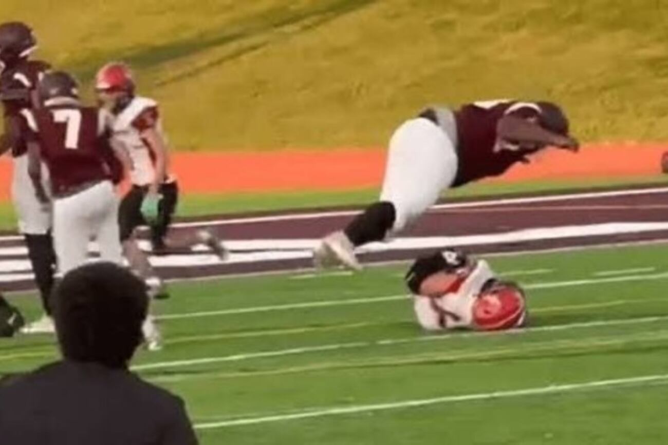 El hecho ocurrió el jueves en el encuentro entre Lakeshore High School y Kalamazoo Central High School. Según reportes, un jugador de Lakeshore, identificado como Mims, se enojó luego de ser bloqueado por un rival, el número 73. La pelota ya estaba lejos cuando, tras caer al suelo, el contrario le saltó encima a propósito.
