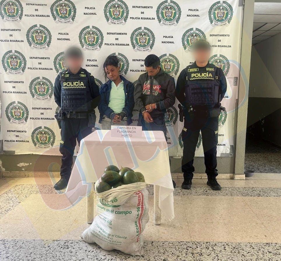 La Policía Nacional capturó a dos personas robando un cultivo de aguacate en el municipio de Apiá, Risaralda. Un hombre y una mujer fueron detenidos cuando recogían frutos en plena cosecha en el sector La Esperanza, una zona cercana a la vía nacional.