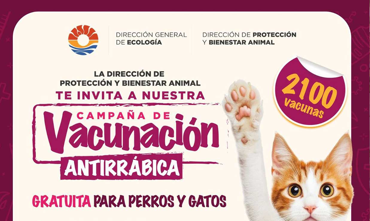 El horario será de 7:30 a 12:30 horas y se aplicarán hasta 350 vacunas diarias, con un total de 2,100 dosis disponibles. La estrategia busca proteger la salud pública y prevenir la rabia, enfermedad que puede afectar a la población humana.