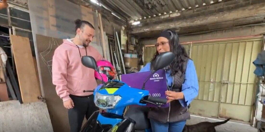Banco Azteca e Italika entregan $50,000 y moto a mujer sobreviviente de cáncer para impulsar su negocio.