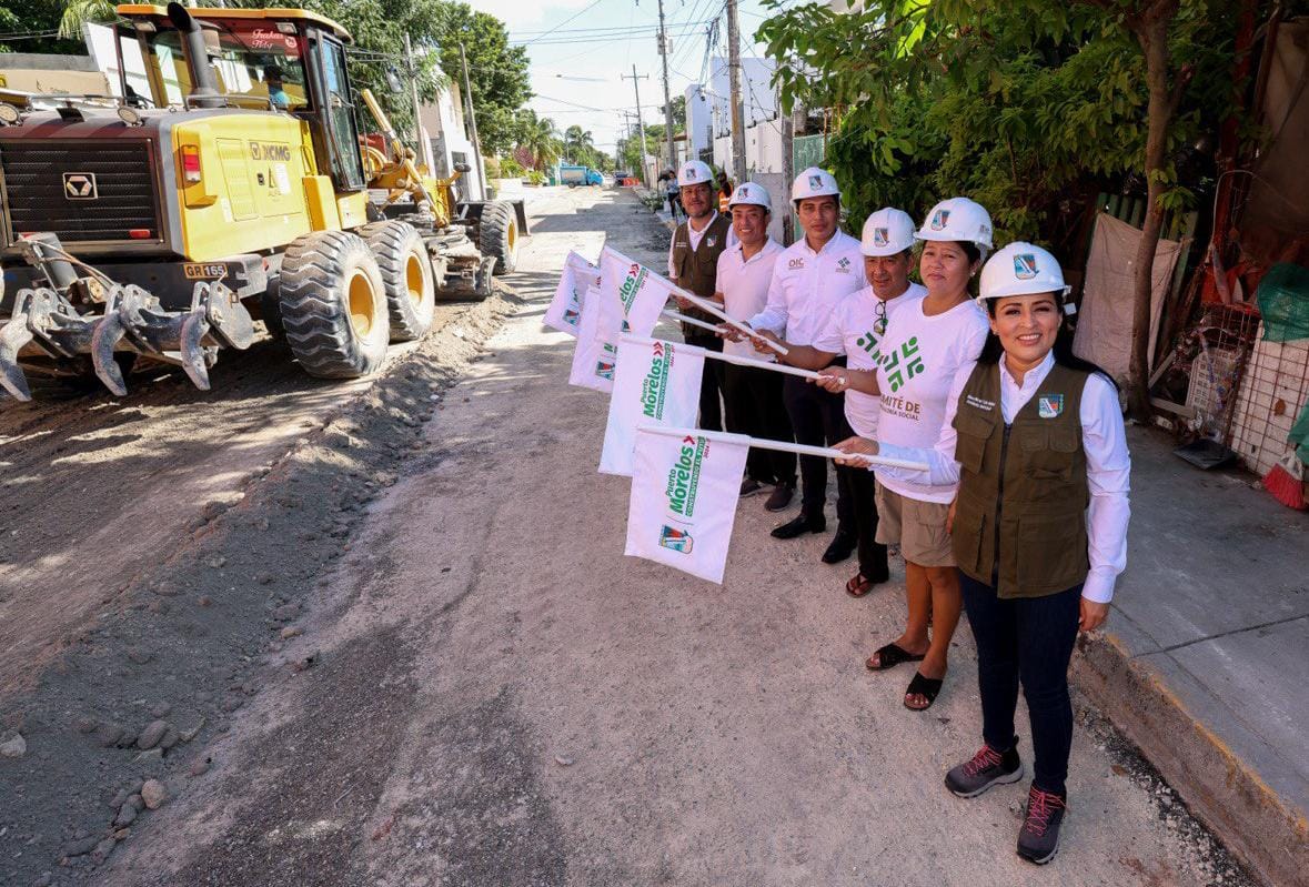 La presidenta municipal Blanca Merari Tziu Muñoz dio el banderazo hoy al programa de reconstrucción de calles en el centro de Puerto Morelos, con una inversión de 7 millones 347 mil 944 pesos provenientes del Fondo de Aportaciones para el Fortalecimiento de los Municipios (Fortamun).