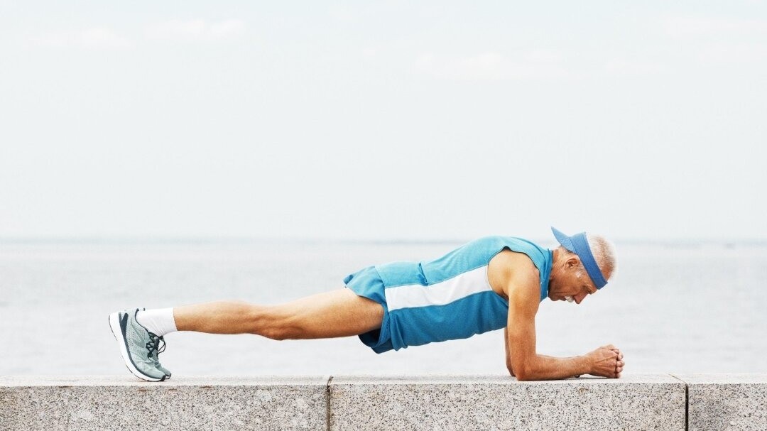 1. Plancha del delfín: Apoyados sobre los antebrazos y punta de pies, se mantiene el cuerpo recto y elevado 30 segundos. Si no es posible, se puede apoyar parcialmente de rodillas. Tres series de 30 segundos fortalecen el core, base fundamental para el resto de movimientos.