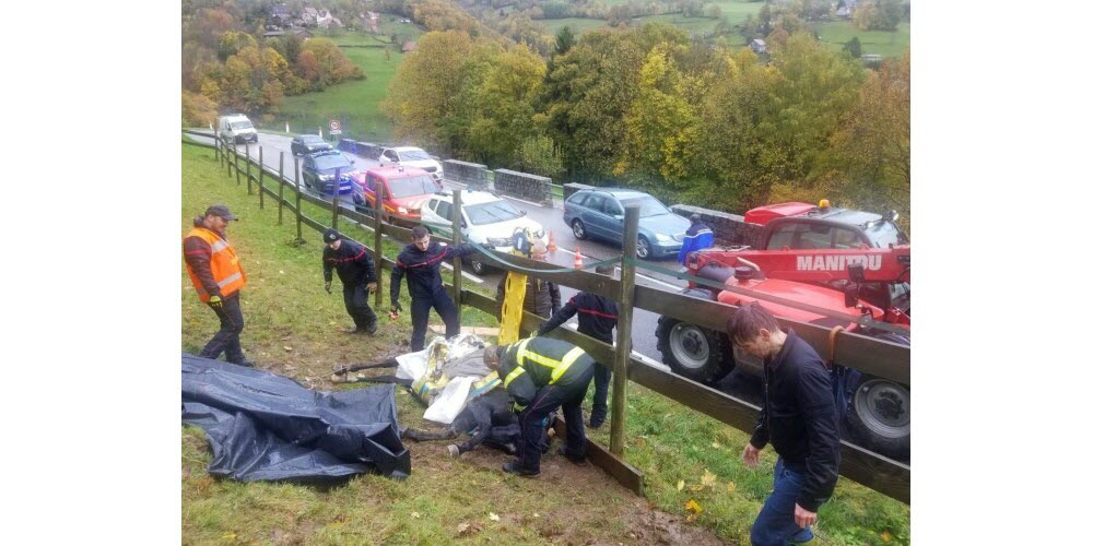 La operación fue difícil: tras levantar al caballo, este no tenía fuerzas para caminar, por lo que fue trasladado cuidadosamente a su establo. Los gendarmes aseguraron el camino bloqueando la circulación para el paso del vehículo agrícola.