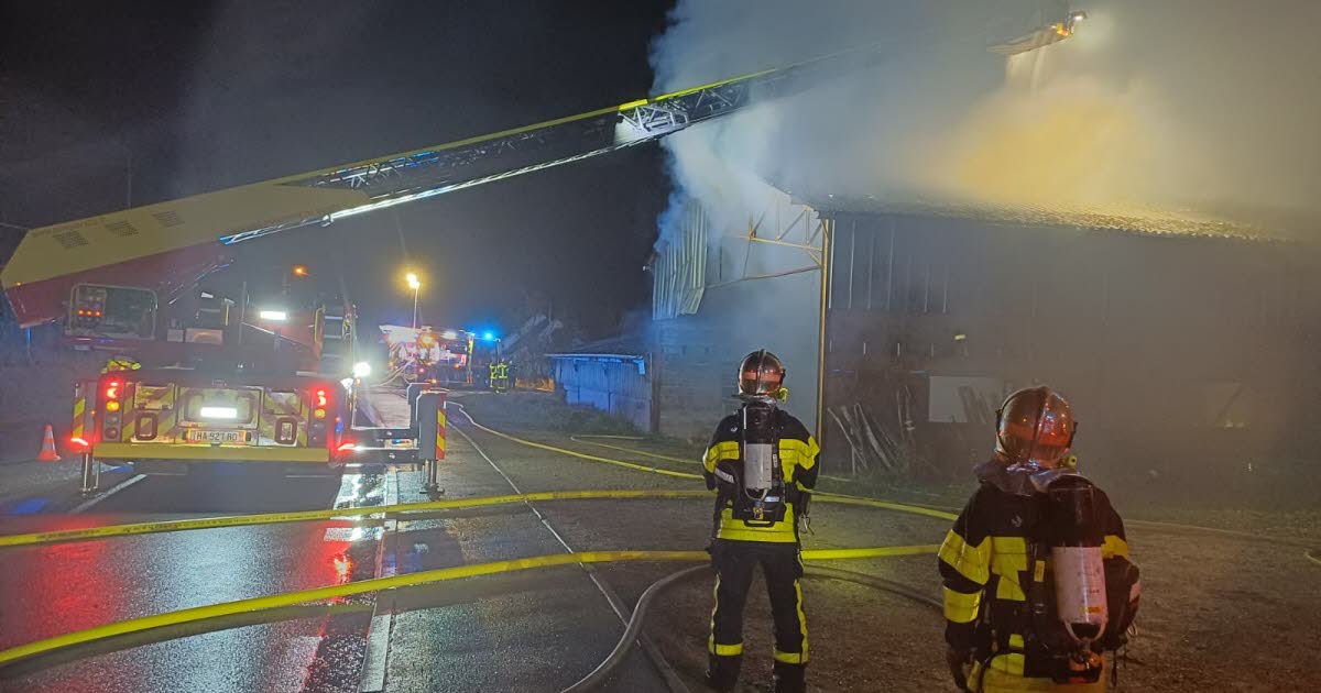 Un incendio declarado este domingo por la noche en Fallerans, Doubs, movilizó a 35 bomberos para contener las llamas en un hangar agrícola de 800 m² ubicado en Le Petit Paris.