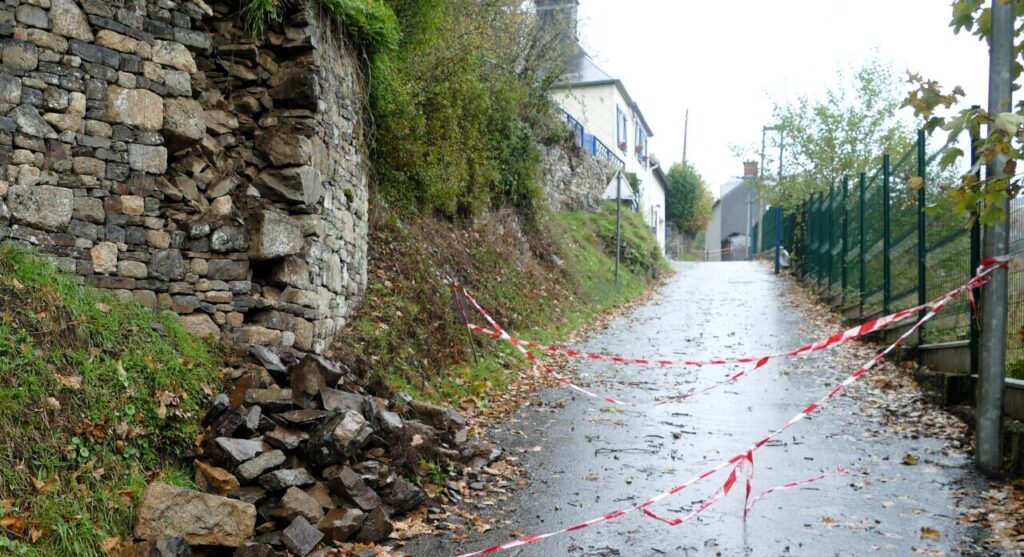 Un viejo muro se desploma en Vire Normandie y bloquea una calle clave sin causar heridos.