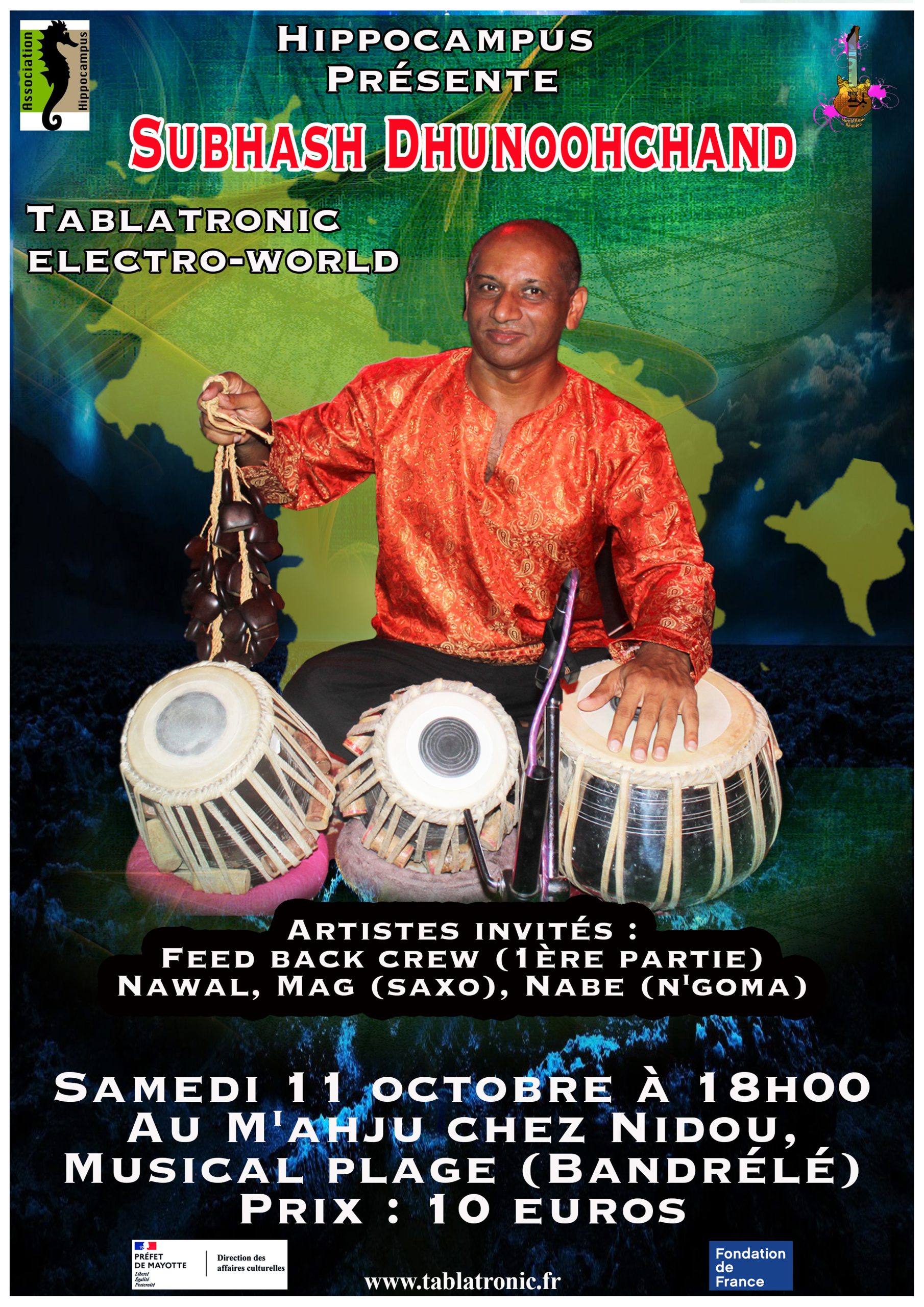 El virtuoso de las tablas indias Subhash Dhunooohchand regresa a Mayotte este sábado 11 de octubre para un concierto en Musical Plage, en el espacio M’haju, a las 18h.