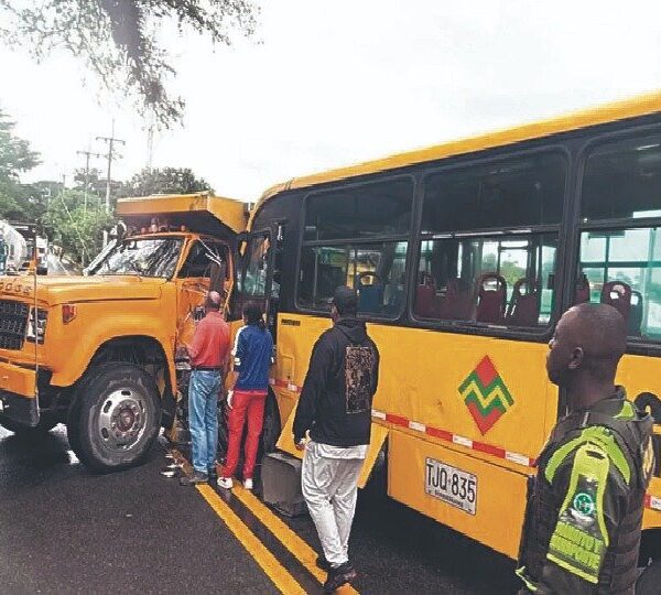 Accidente entre volqueta y alimentador de Megabús deja dos heridos y pasajeros con golpes leves.