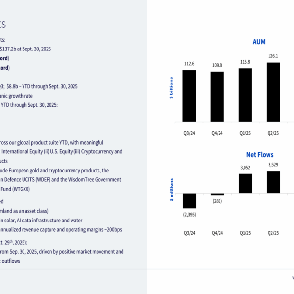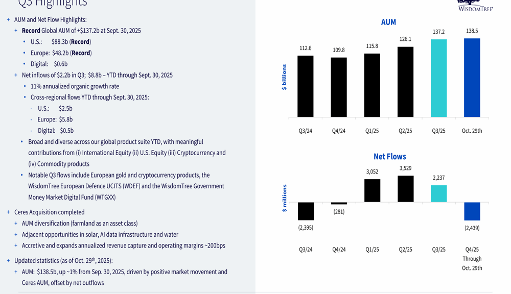 WisdomTree bate récords de activos bajo gestión y amplía márgenes en el tercer trimestre de 2025.