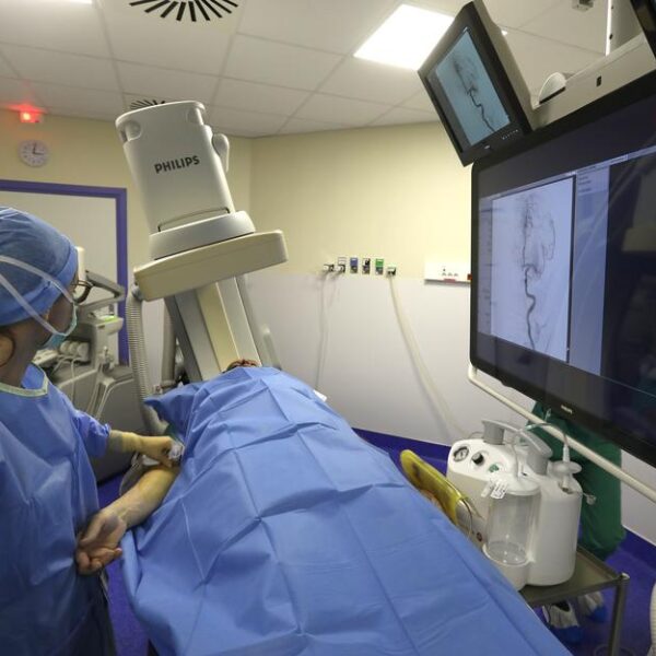 El hospital de Pau instala stand y ofrece conferencia para alertar sobre riesgos del AVC.