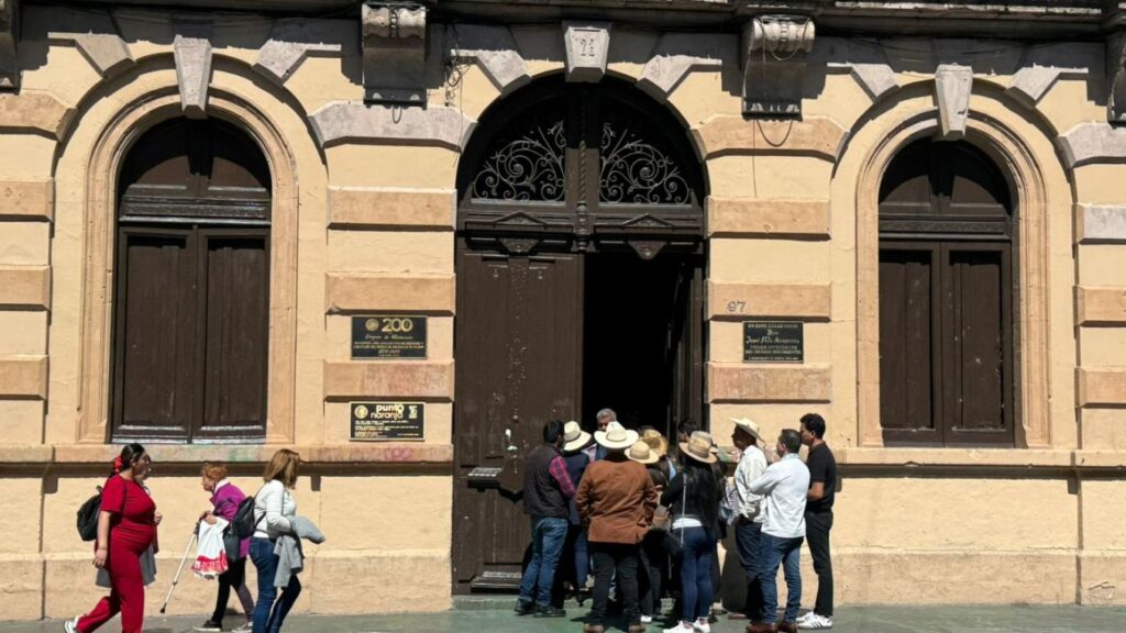 Simpatizantes y policías bloquean avenida Madero para recibir a Grecia Quiroz en Morelia.